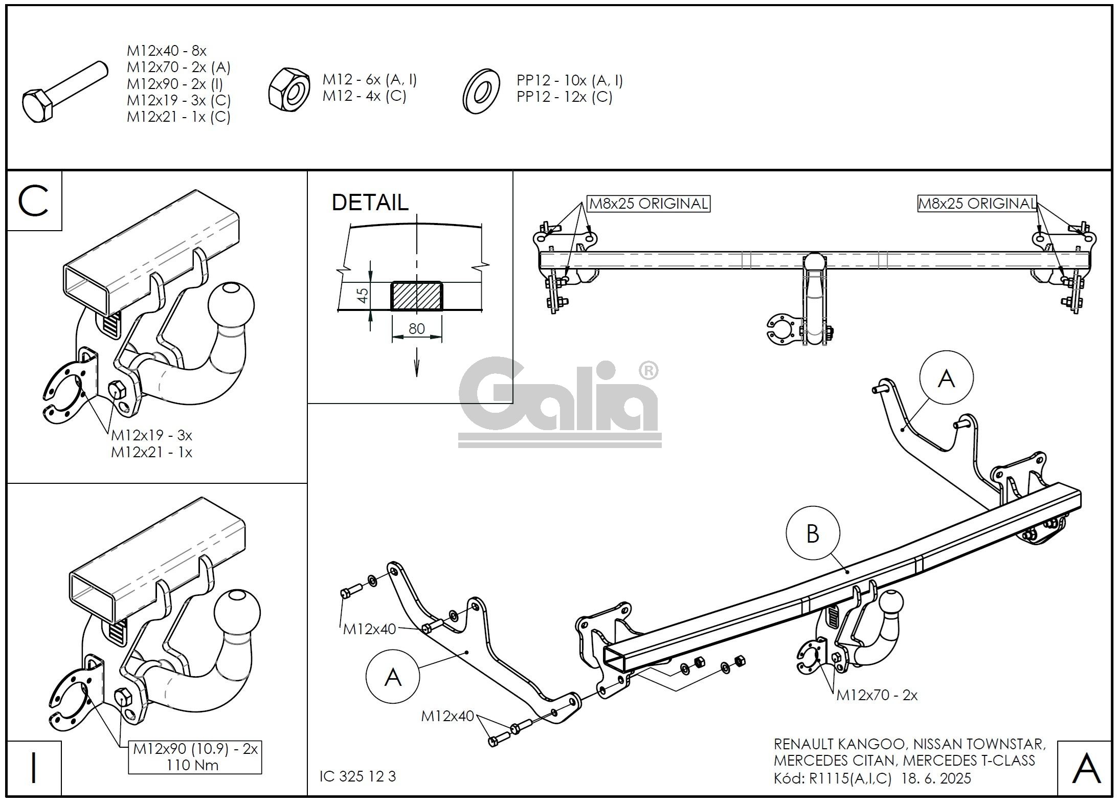 Фаркоп Galia для Mercedes Citan 2021-